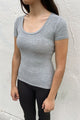 - Style Description: Basic Short Sleeve Square Neck Double Layer Rib Knit Top