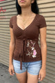 - Style Description: 2000s Floral Embroidered Sleeveless Baby Doll Surplice Top with Back Tie