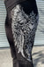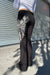 - Style Description: Y2K McBling Pierce Heart Cross & Wing Graphic Rhinestone Print Fold-Over Flare Pants