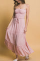 - Style Description: Bohemian Ruff Smocked Cami Maxi Dress