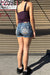 - Style Description: 2000s Bedazzled Rhinestone Crown Denim Shorts