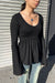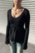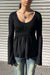 - Style Description: 2000s Vintage Plunging Neck Smocked Babydoll Long Sleeve Top