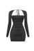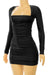 - Style Description: Tresser™ Long Sleeve Square Neck Back Tie Ruched Mini Dress