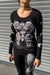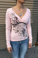 - Style Description: Y2K McBling Fleur De Lis Graphic Rhinestone Print Side Shirred Long Sleeve T-Shirt