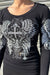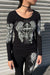 - Style Description: Y2K McBling Gothic Cross & Wing Graphic Rhinestone Print Side Shirred Long Sleeve T-Shirt
