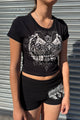 - Style Description: Y2K McBling Red Love Heart Rhinestone Print Crew Neck Short Sleeve Crop Top