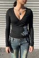 - Style Description: 2000s Floral Print Contrast Layered Long Sleeve Surplice Top