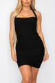 • Style Description: ENBE™ Off-the-Shoulder Ruched Long Sleeve Mini Bodycon Magic Stretch Dress with Adjustable Ties (Double-Layered)