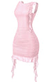 - Style Description: ENBE™ Ruched Bodycon Mini Deep V-Neck Lace-Up Magic Stretch Dress (Double-Layered)