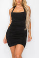 - Style Description: ENBE™ Ruched Square Neck Sleeveless Midi Bodycon Magic Stretch Dress (Double-Layered)