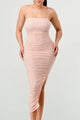 - Style Description: PrivyUSA™ Mesh Ruffle Ruched Sweetheart Sleeveless Bodycon Tulip Hem Mini Dress
