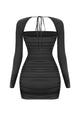 - Style Description: Tresser™ Long Sleeve Square Neck Bow-Tie Bell Sleeve Ruffled Mini Dress