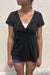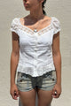- Style Description: 2000s Romantic Gothic Style V-Neck Surplice Baby Doll Short Sleeve Top with Ribbon Stitch Detail