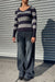 - Style Description: 2000s Vintage Style Striped V-Neck Sweater