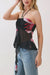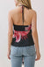 - Style Description: Big Flower Mesh Print Bead Embellished Bandeau Camisole Top