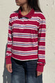 - Style Description: Preppy Long Sleeve Multi Stripe White Polo T-Shirt