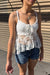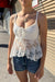 - Style Description: Retro Flower Lace Baby Doll Cami Top with Front-Tie