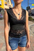 - Style Description: Romantic Goth Lace Block V-Neck Sleeveless Top