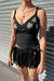 - Style Description: Romantic Goth Low-Rise Lace-Tiered Ruffle Mini Skirt with Built-In Shorts