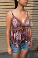 - Style Description: Retro Flower Lace Baby Doll Cami Top with Front-Tie