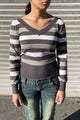 - Style Description: 2000s Vintage Style Striped V-Neck Sweater