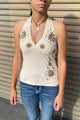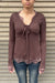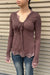 - Style Description: 2000s Vintage Style Lace-Trimmed V-Neck Front-Tie Long Sleeve Pointelle Knit Baby Doll Top