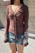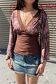 - 2000s Vintage Style Print Deep V-Neck Bell Sleeve Top with Front Tie
