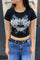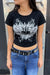 Grunge Style Wing & Heart Print Short Sleeve Crop Knit Top