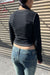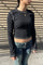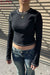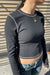 - Style Description: Long Sleeve Crew Neck Contrast Stitch Scalloped Edge Rib Knit Top